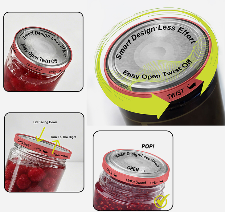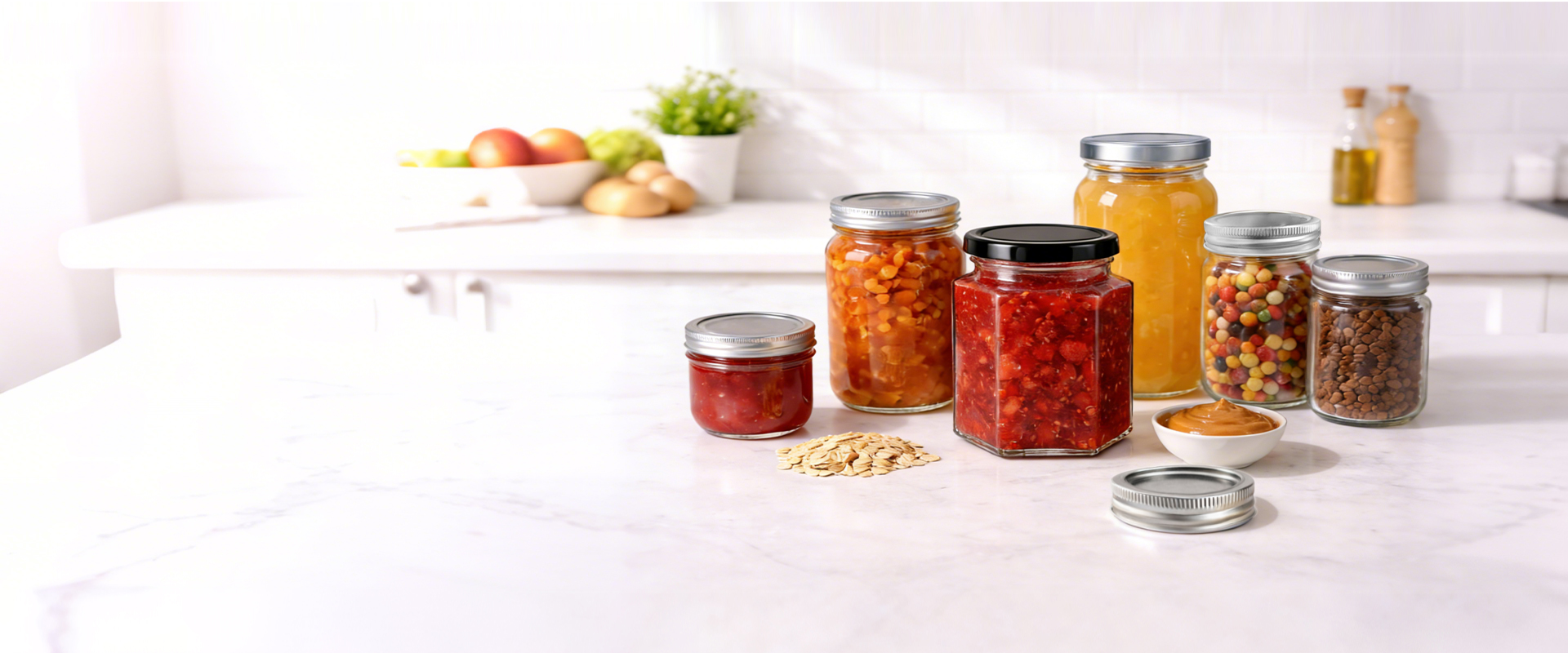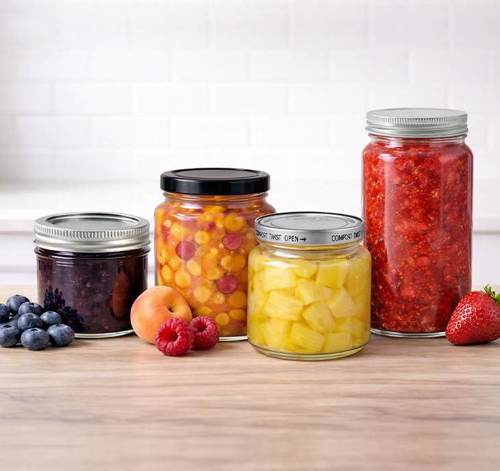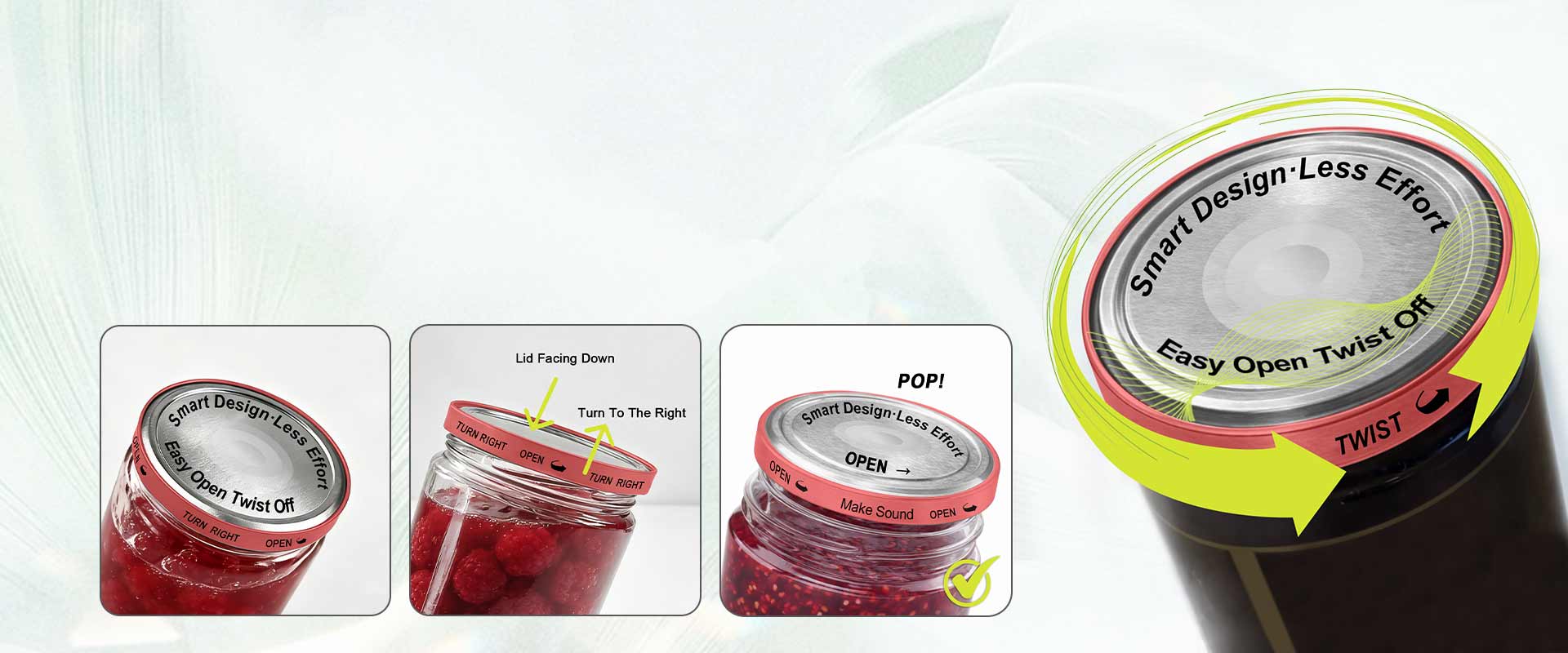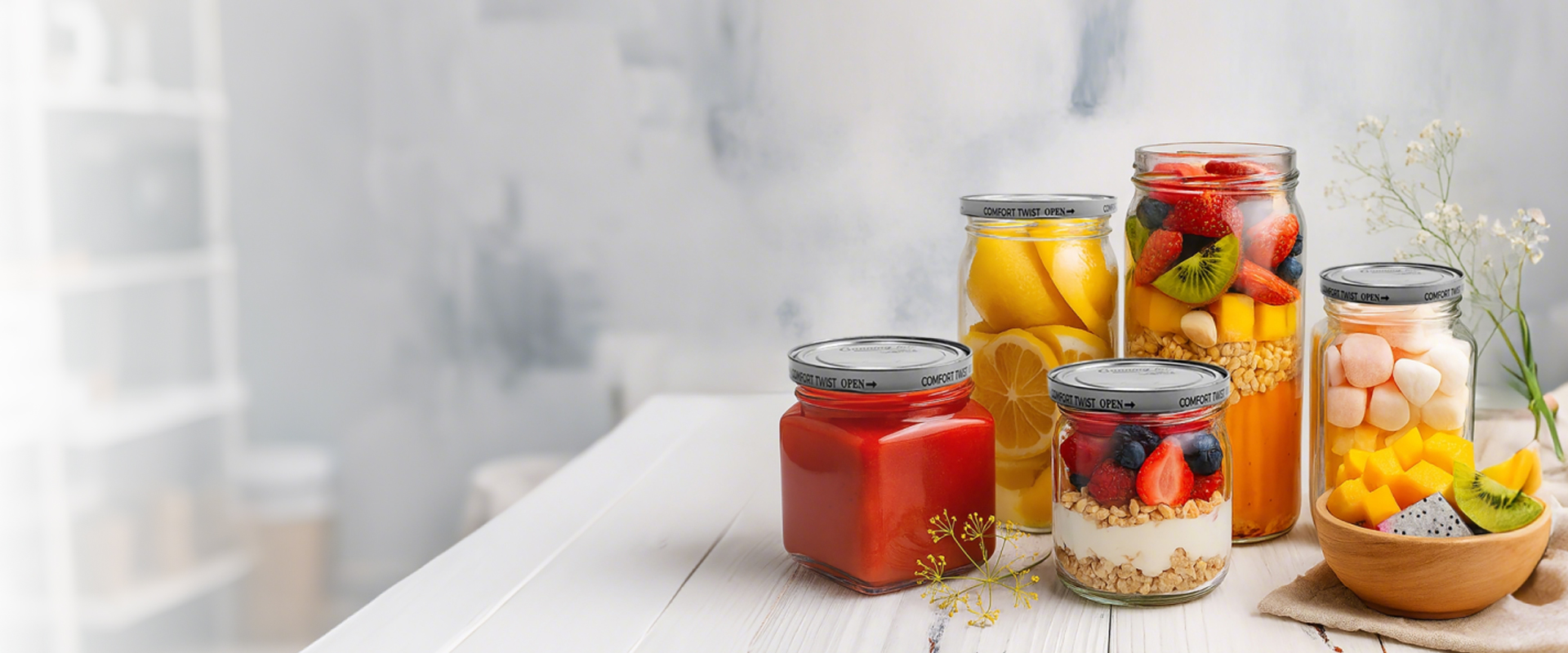 برطمانات زجاجية صالحة للطعام وأغطية متقدمة سهلة الفتح ومحكم الغلق مع موثوقية إغلاق بنسبة 100% - مصممة من أجل السلامة والنضارة وراحة المستخدم.
